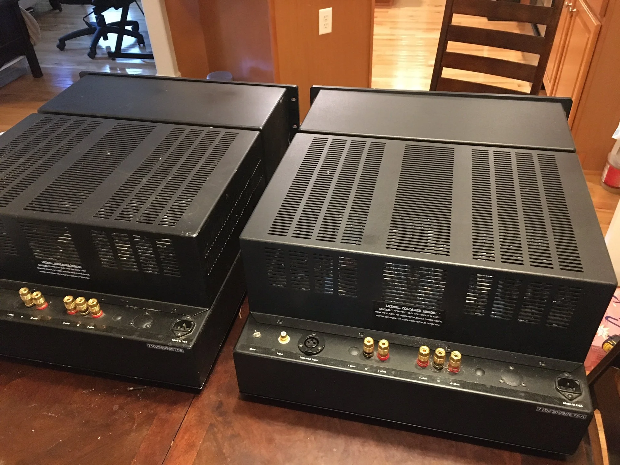 A pair of sequential serial # Melos SE-75 High Current Triode, Single Ended Monoblock Tube Amplifiers. These are world-class amplifiers by any standards. Yes, they sound amazing. Stunningly amazing. Unfortunately I no longer have a listening room and am not using them, so here they are. If you have a listening room and want to audition them contact me.